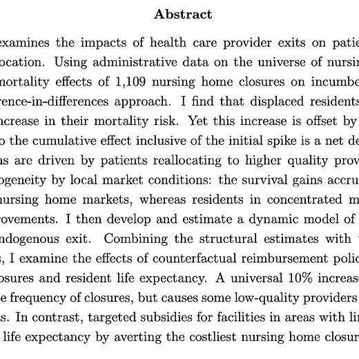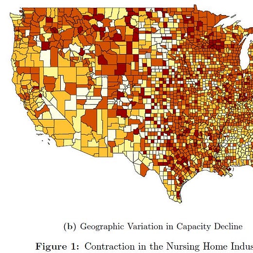 Even prior to Covid, there's been a large contraction in the nursing home industry over the past two decades, driven in part by low Medicaid rates. I ask what these closures mean for incumbent residents, and what we should do about them