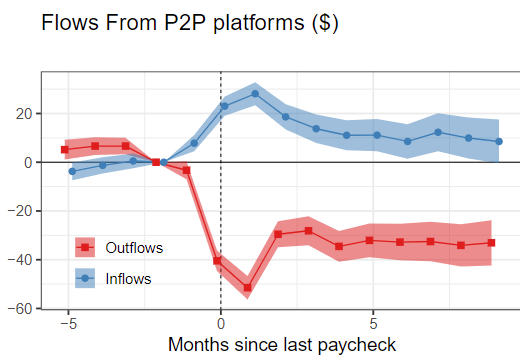 The pandemic accelerated a shift towards direct giving on P2P platforms. I use a large, admin bank txn dataset of low-income workers to estimate that mean monthly P2P inflows increased $30 a month after job loss before returning to baseline over 10 months.