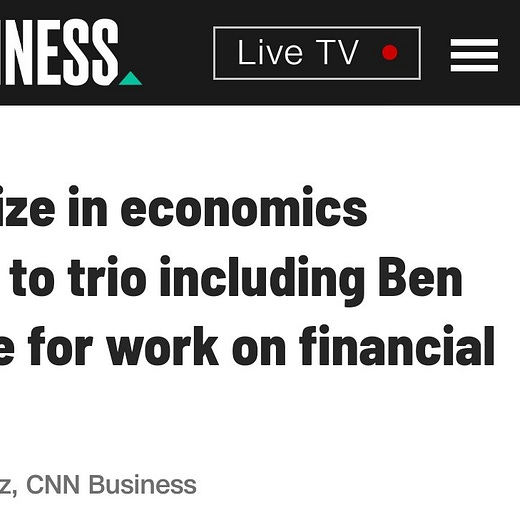 This year’s Nobel prize goes to Bernanke, Diamond, and Dybvig “for research on banks and financial crises.”