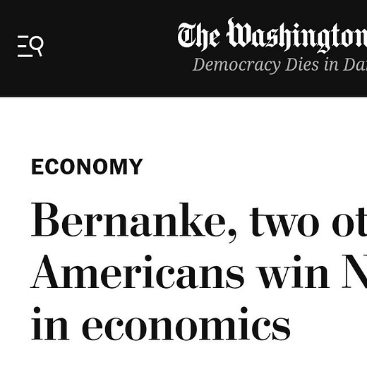 Huge congratulations to a much-deserved prize. Work by @benbernanke on the Great Depression was a major motivation to my own research. And I teach Diamond-Dybvig in intermediate macro every year. A short thread on the scientific citation.