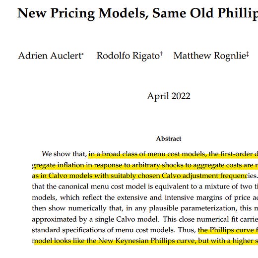 Elegant new working paper -- "New Pricing Models, Same Old Phillips Curves?" -- by @a_auclert, Rigato, Rognlie, @ludwigstraub.