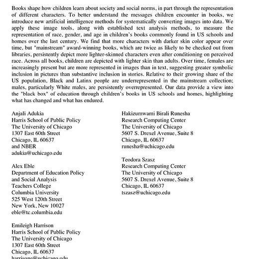 White males are consistently overrepresented as characters in children's books.