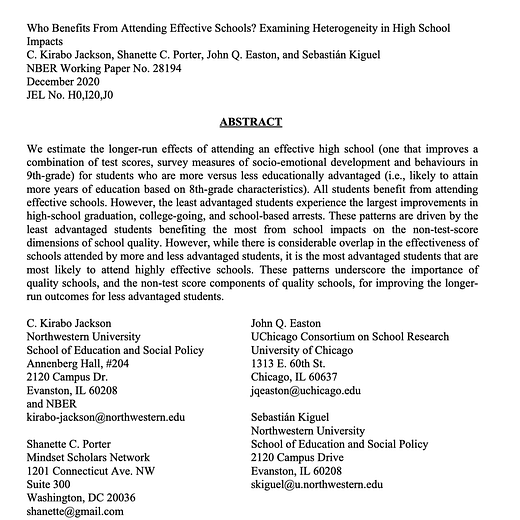 Disadvantaged students experience the largest improvements from attending highly effective schools.