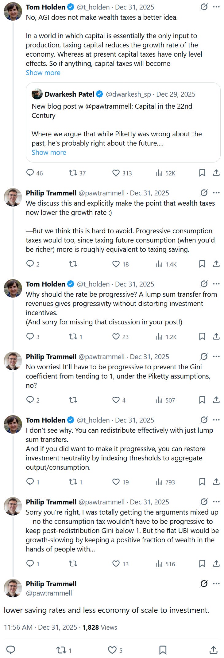 ^“I am highly confident that there are some hypothetical worlds where you’d be better off taxing wealth”, says the reply of an infidel who has not been graced by the purifying light of optimal tax theory
