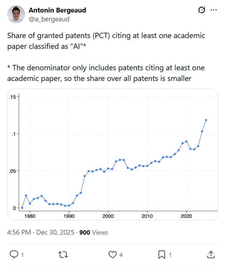 You and Your ResearchAI and your researchShare of patents citing AI papers over time