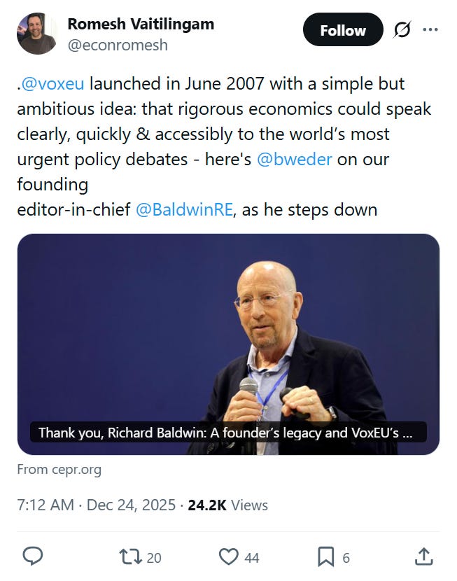 Best of #econtwitter - Week of January 4, 2026: good tweets