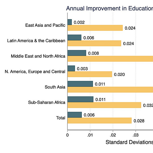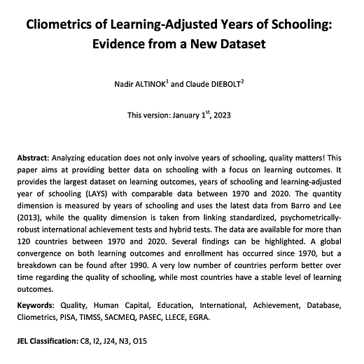 New paper uses LAYS (learning-adjusted years of school) to put quality & quantity on the same scale.