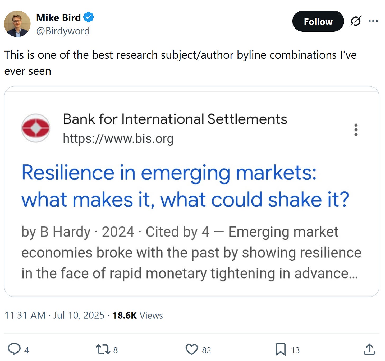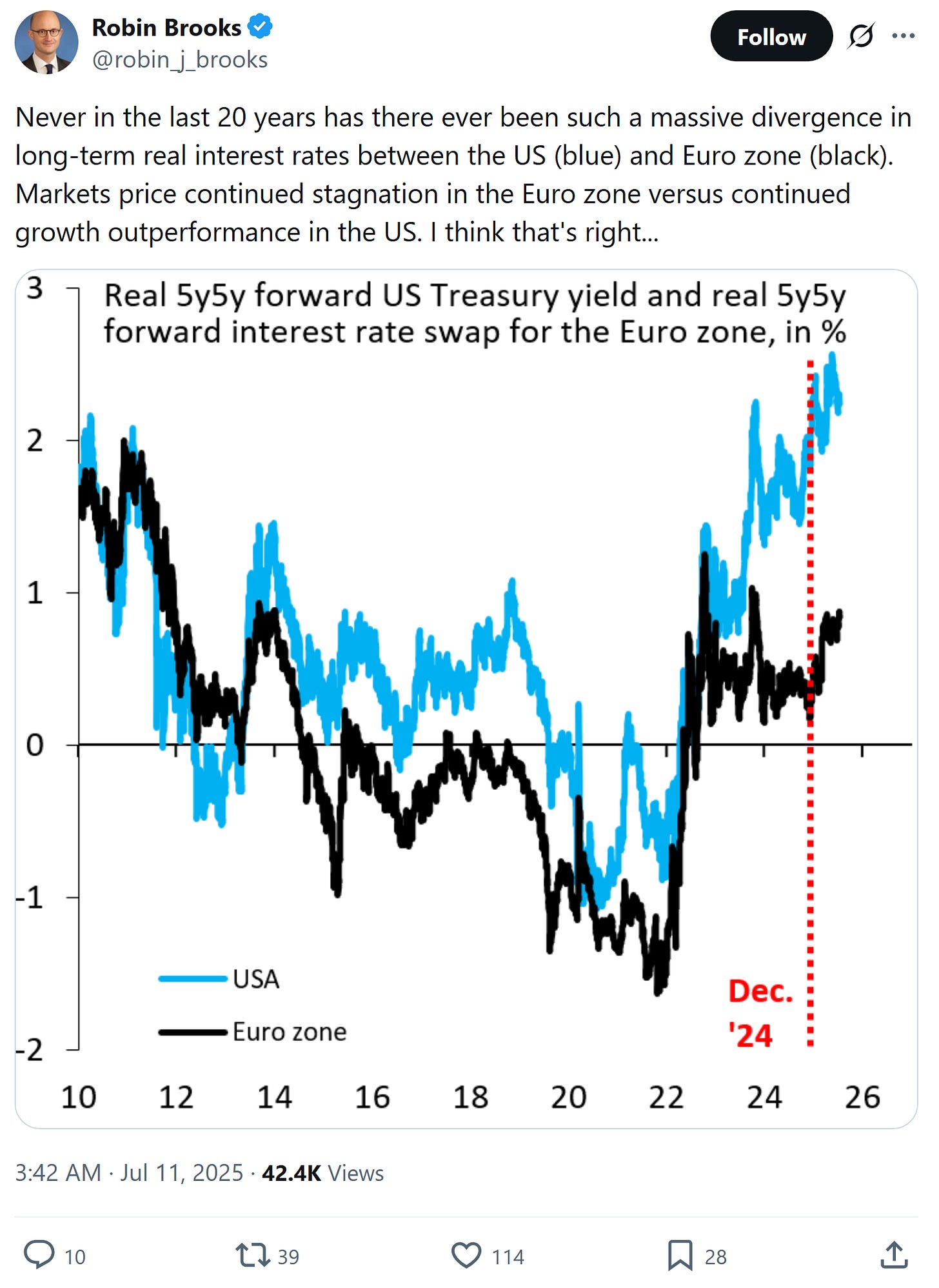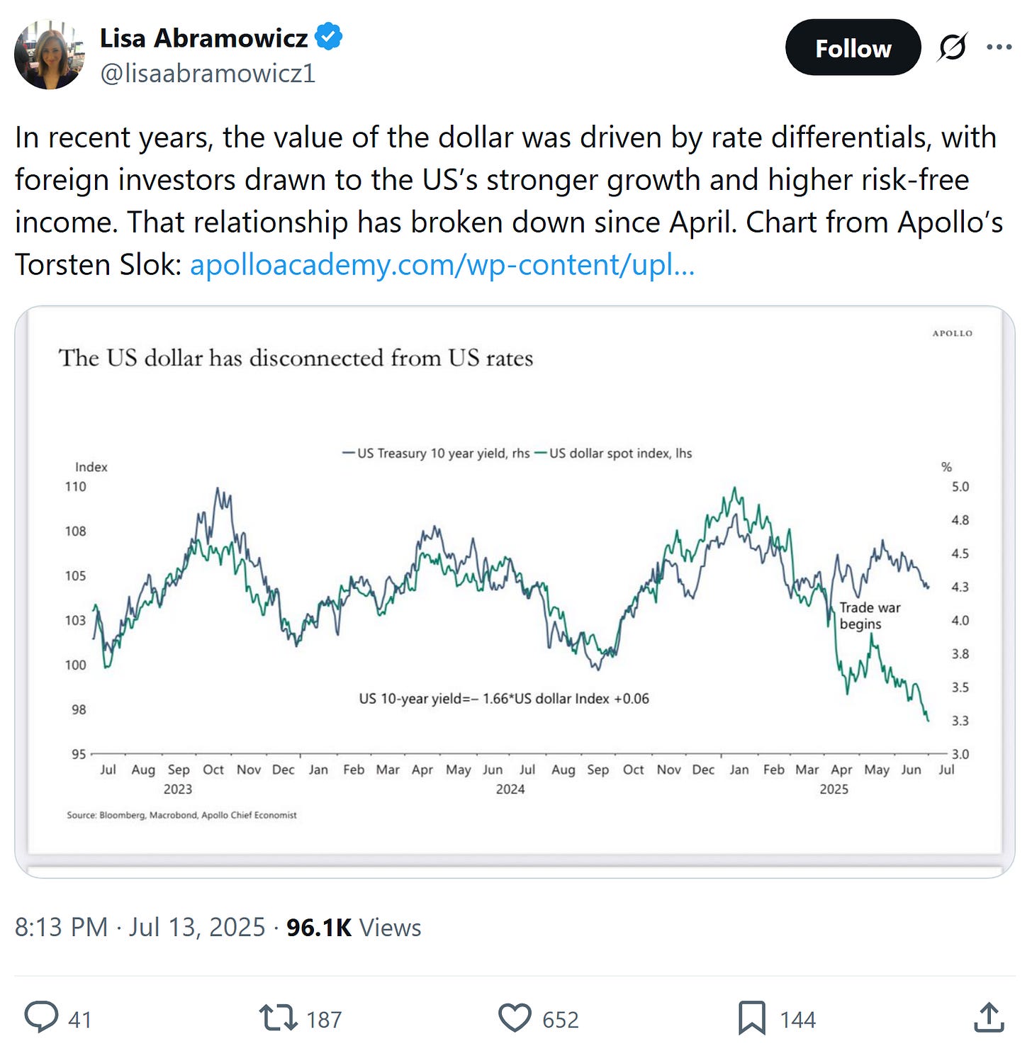 ^very interested if anyone has thoughts on the best explanation. Is this because of tariffs and/or fiscal policy…?, perhaps related: