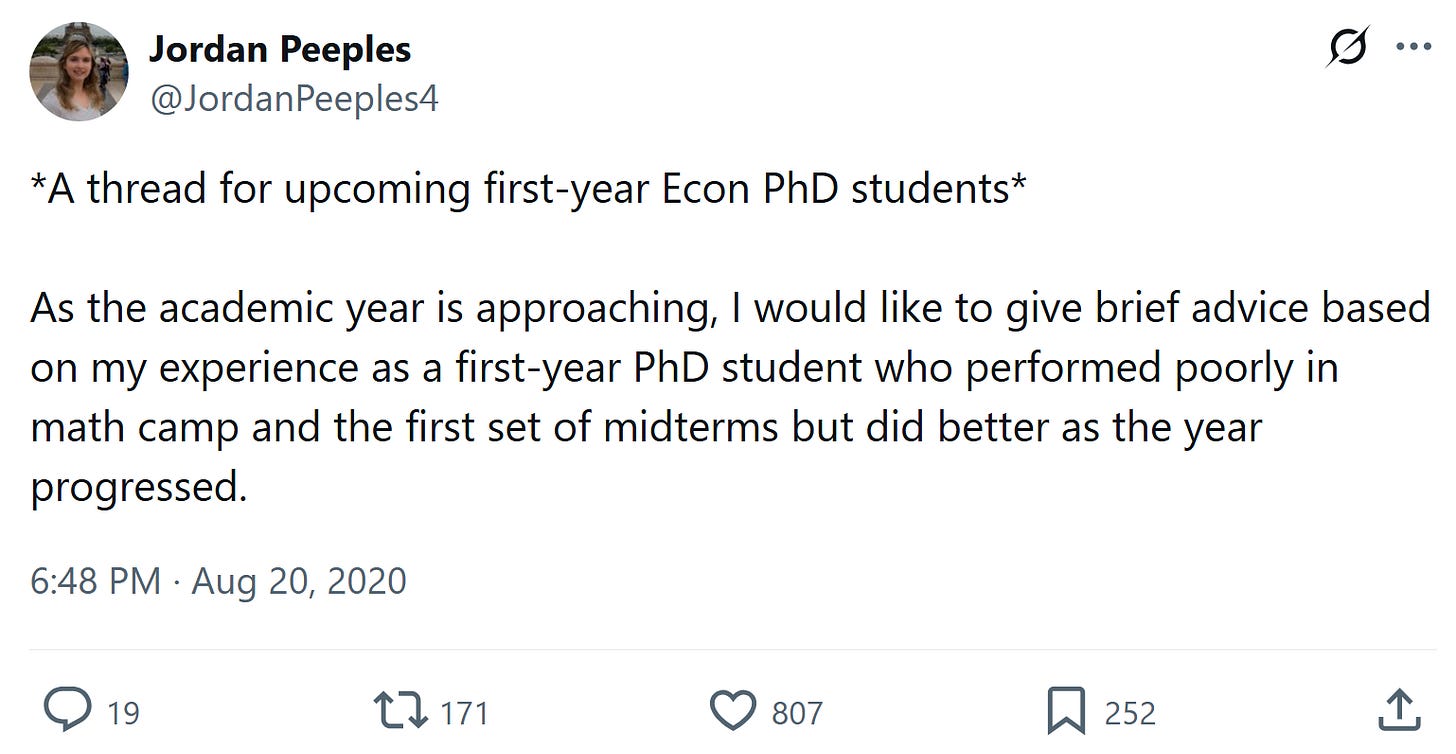 (though it’s hard for me to put my finger on why, by all accounts including my own, “the JM” is a worse experience than the experience of searching for a job in the private sector… in the PhD, you undertook a risky 4-to-7+-year investment whose outcome is a noisy random variable; and on the market you finally get to observe the realized value — that is just inherently painful?)