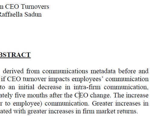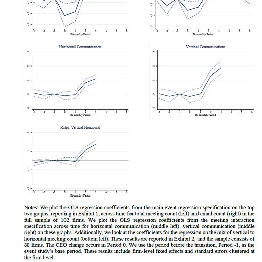 1⃣ CEO turnover leads to initial ⬇️in intra-firm comm., followed by a ⬆️~5m thereafter.