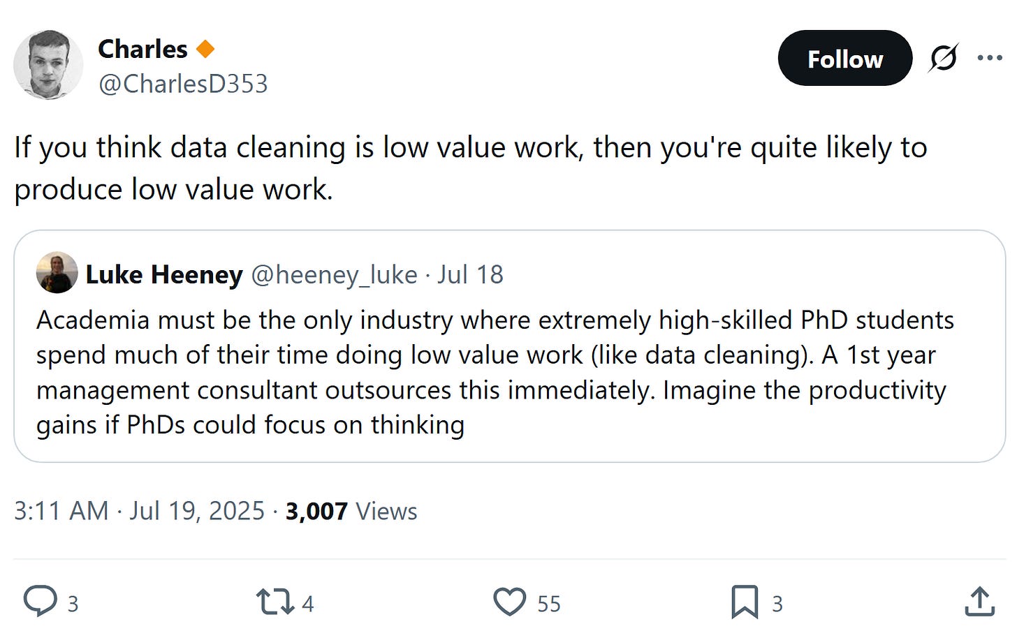 ^IMO it is simultaneously true that doing your own data cleaning can often have a lot of value; but also that researchers could think harder about outsourcing more tasks