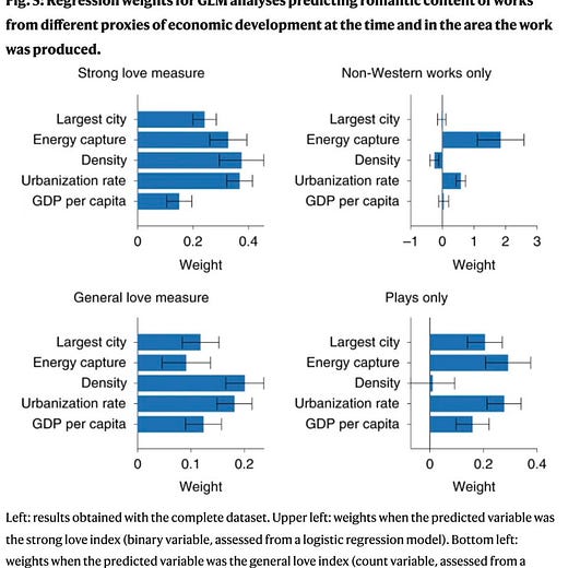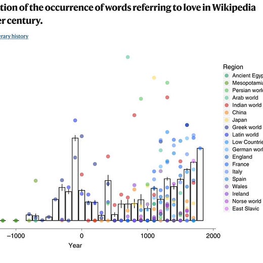 What do you discover if you analyse estimated historical living standards and ALL the literature on “love” (from @Wikipedia)?