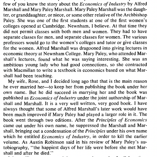 Friedman's take on why Marshall married Mary Palley (cc @CleoCZ ): "the main reason he ever married her - to keep her from publishing the book under her own name...After the Principles came out under his own name, he suppressed the Marshall and Marshall"