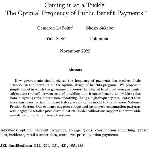 “Coming in at a Trickle: The Optimal Frequency of Public Benefit Payments”