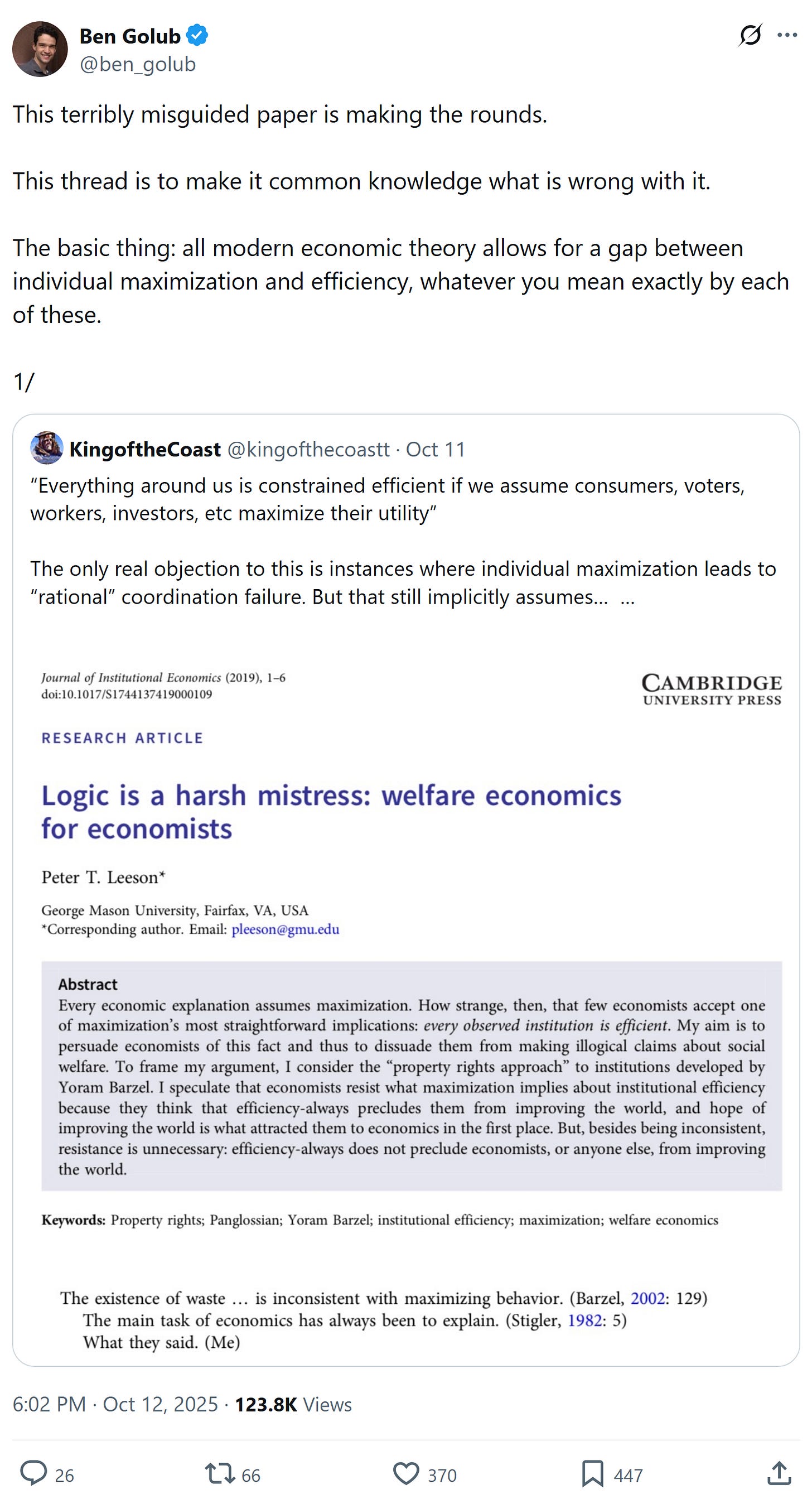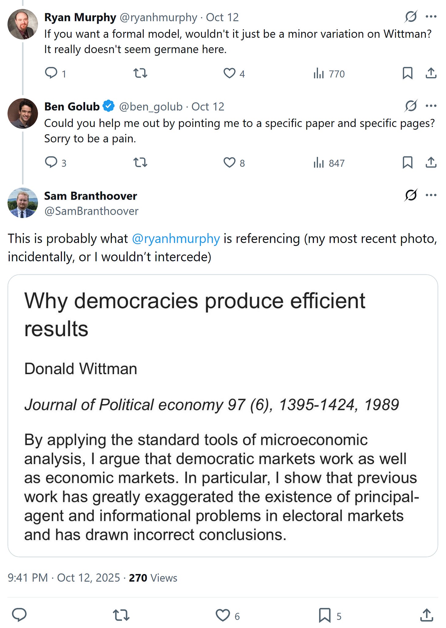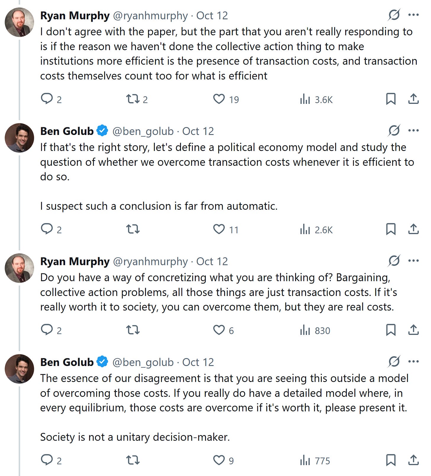^without digging into the details, and based on the following exchange, this sure sounds like what Acemoglu framed as “Why not a political Coase theorem?”: