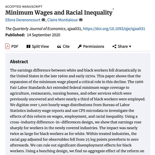 The minimum wage reduces racial income inequality.